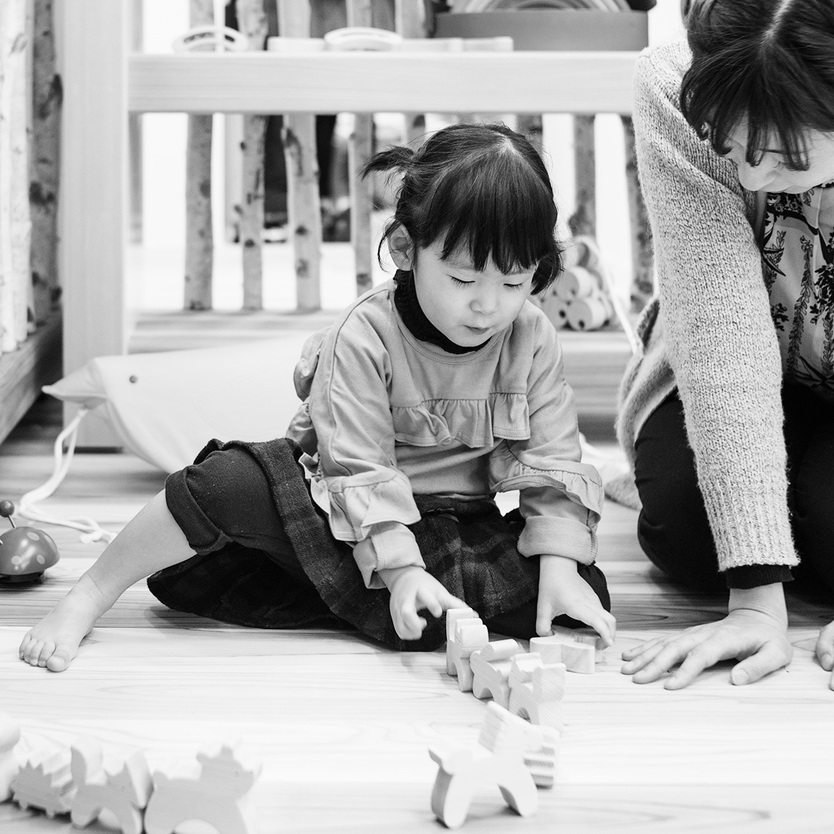 おもちゃは生まれて初めて子どもが触れる芸術・美術品です。情緒が安定し、感性が育まれる場所として、限りなく美しく心地よい空間づくりを行っています。